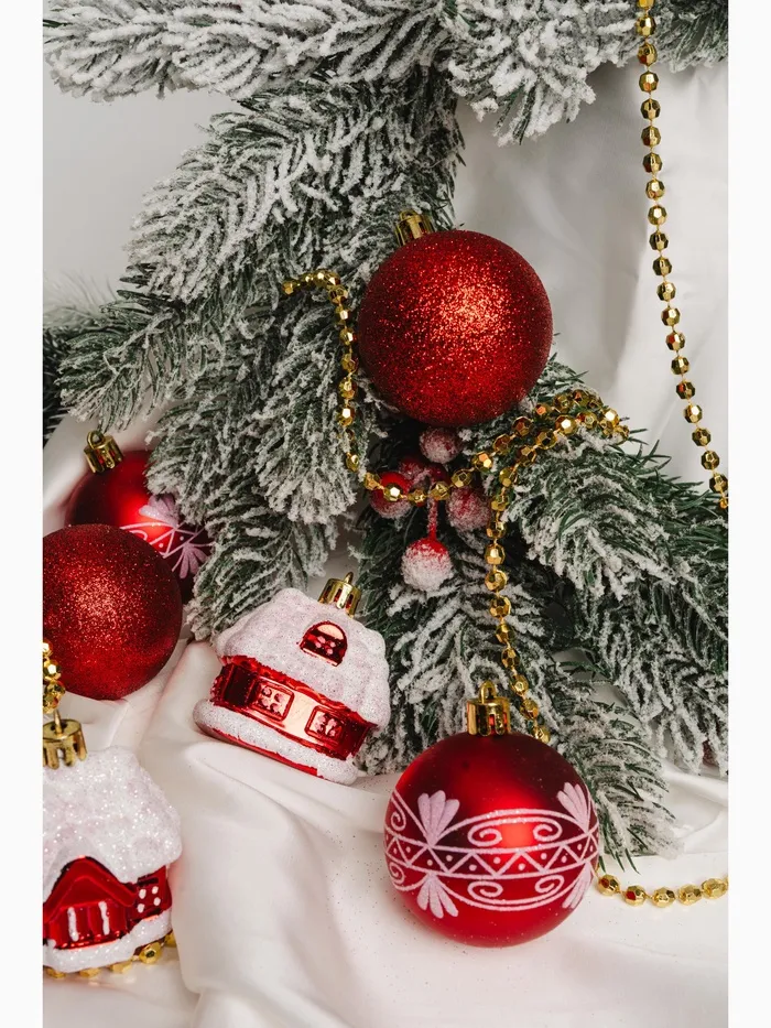 Этот набор задаёт тон всему празднику. Он сочетает традиции и современность, поэтому подойдёт как для семейного торжества, так и для стильного интерьера. Подвесьте шары и домики вперемешку, дополните гирляндами — и ёлка заиграет по-настоящему зимним светом. Праздник начинается с деталей, и эта деталь — обязательная часть вашей новогодней атмосферы.