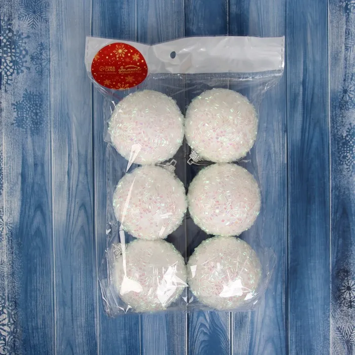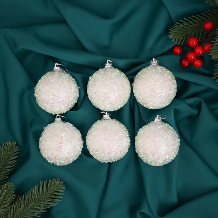 Ёлочные игрушки «Пушинка - бисер», шары новогодние, d=5.5 см, набор 6 шт., белый — Характеристики
