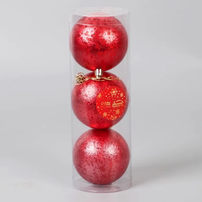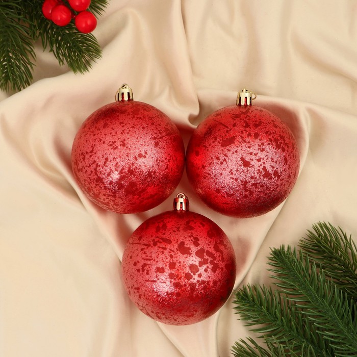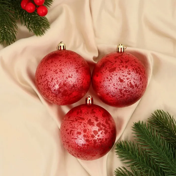 Ёлочные игрушки «Ретро», шары новогодние, d=8 см, набор 3 шт., красный — Характеристики