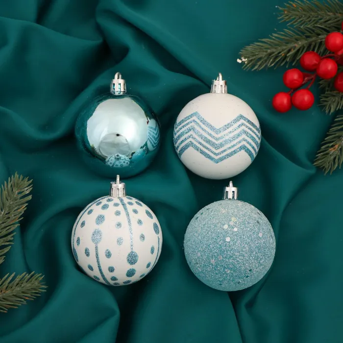 Ёлочные игрушки «Рогнеда», шары новогодние, d=6 см, набор 4 шт., бело-голубой — Характеристики