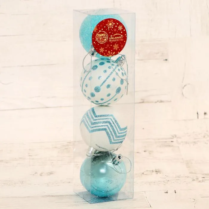 Ёлочные игрушки «Рогнеда», шары новогодние, d=6 см, набор 4 шт., бело-голубой