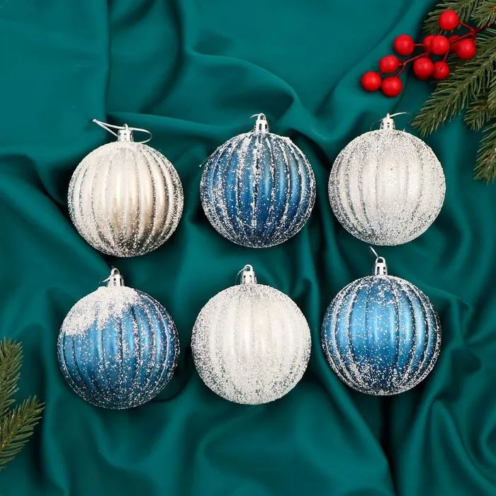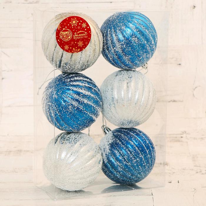 Ёлочные игрушки «Роксолана», шары новогодние, набор 6 шт., d=8 см, бело - синий — Характеристики