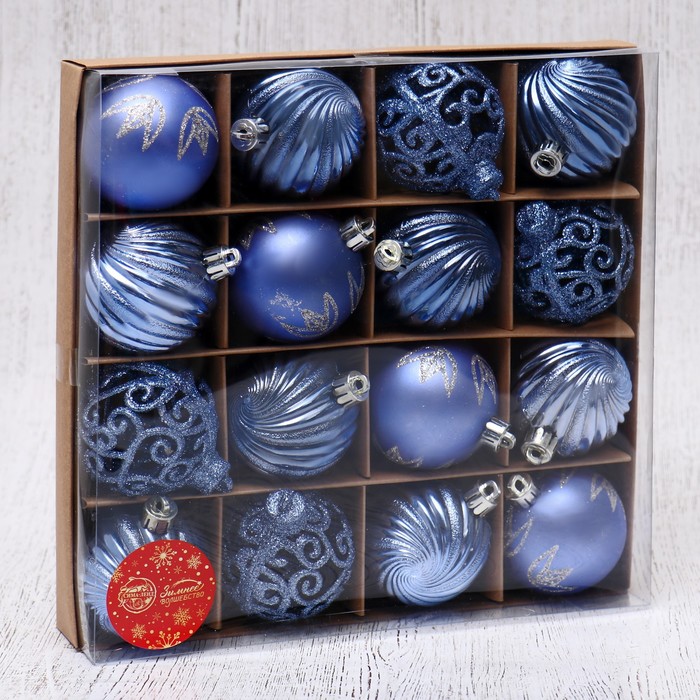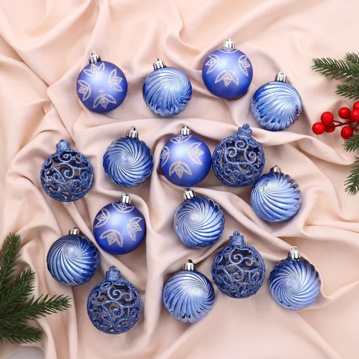 Ёлочные игрушки «Руби узоры», шары новогодние, d=6 см, набор 16 шт., сине-сиреневый — Характеристики