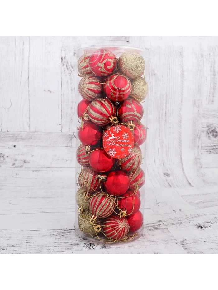 Ёлочные игрушки «Салют торжества», шары новогодние, d=4 см, набор 40 шт., красно-золотой — Характеристики