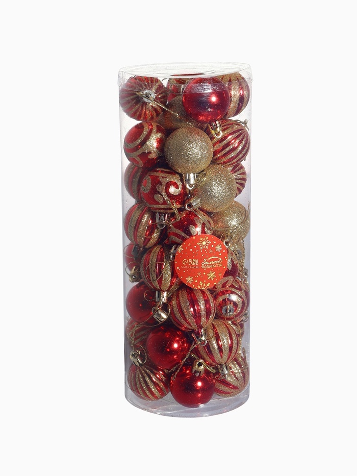- В наборе 40 шаров, что позволяет создать разнообразные композиции и украсить ёлку с разных сторон, обеспечивая равномерное распределение цвета и стиля.