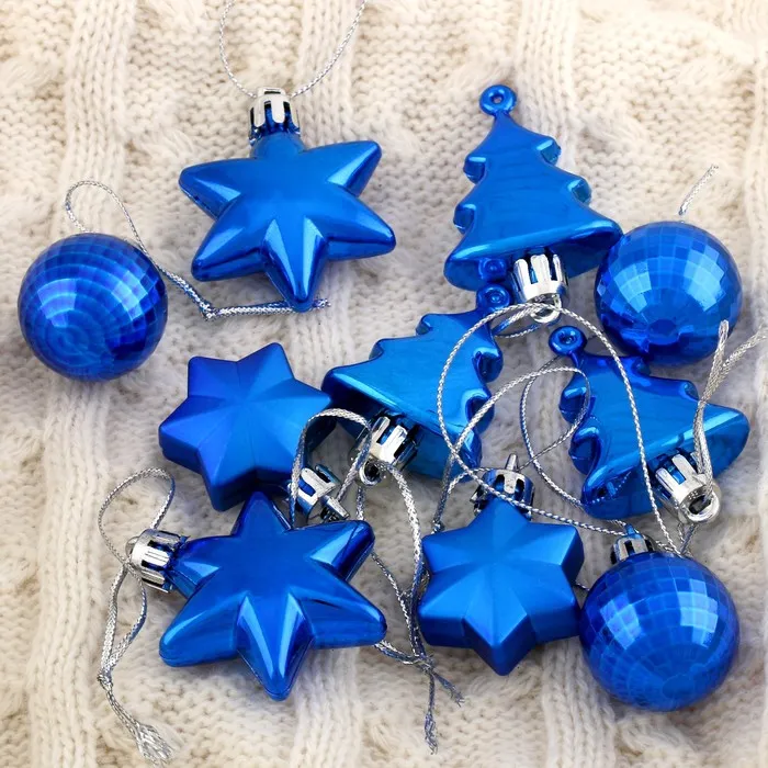 Ёлочные игрушки «Санда», шары новогодние, набор 10 шт., (2 шара,2 конфеты,2 елки, 4 звезды), синий — Характеристики