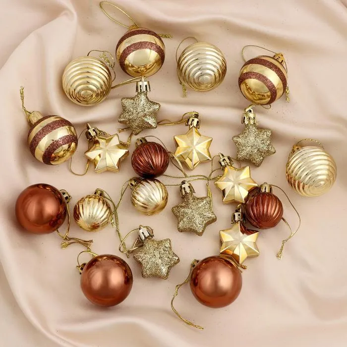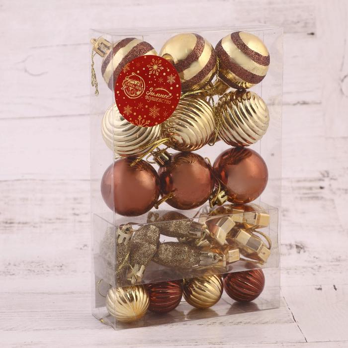 Ёлочные игрушки «Серпантин» , шары новогодние, набор 21 шт., кофейный/золотой — Характеристики