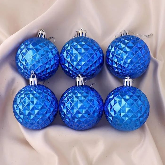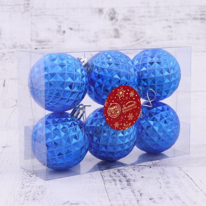 Ёлочные игрушки «Сетка», шары новогодние, набор 6 шт., d=6 см, синий — Характеристики