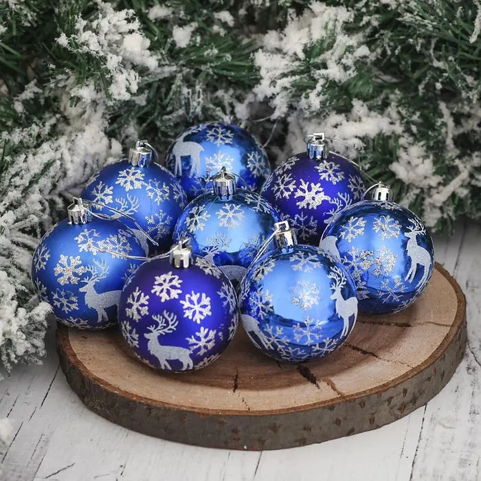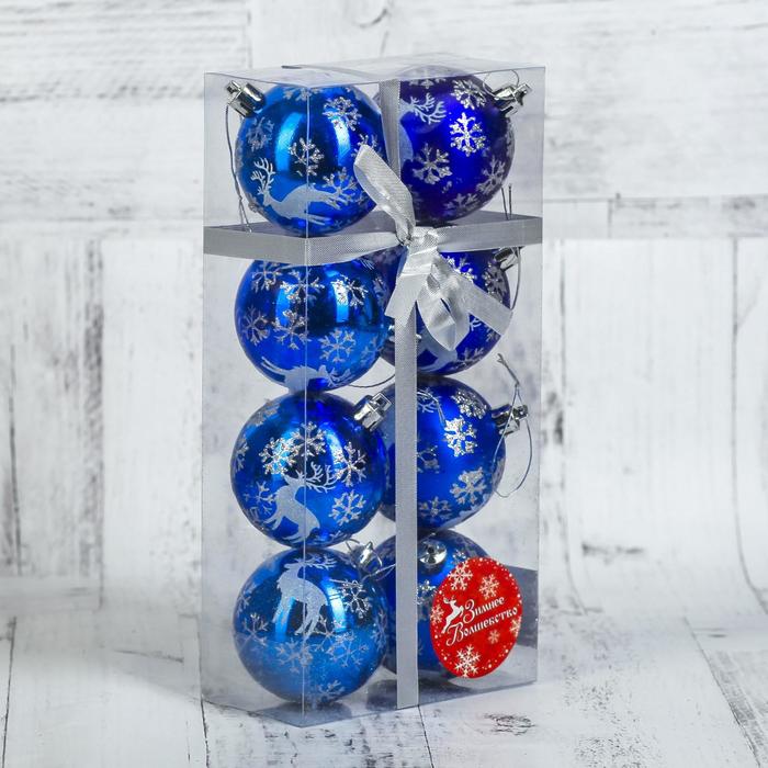 Ёлочные игрушки «Северный олень», шары новогодние, d=6 см, набор 8 шт., синий — Характеристики