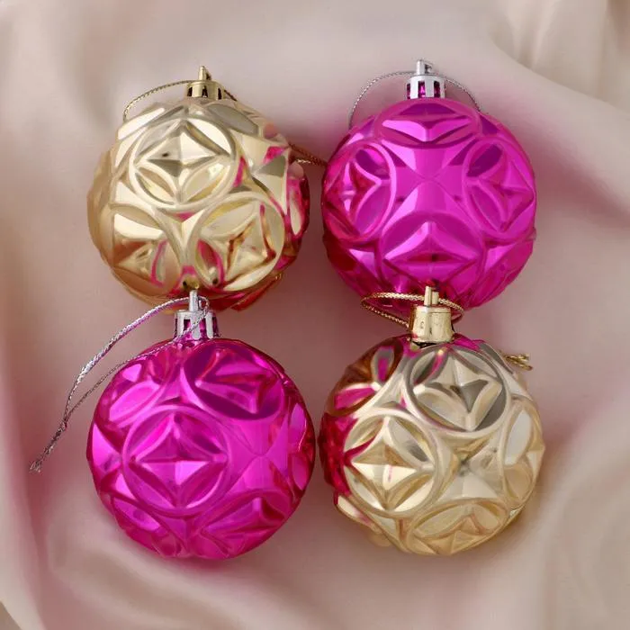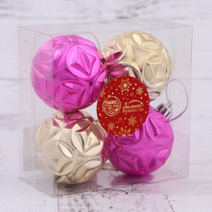 Ёлочные игрушки «Сфера», шары новогодние, набор 4 шт., d=6 см, розово - золотистый — Характеристики