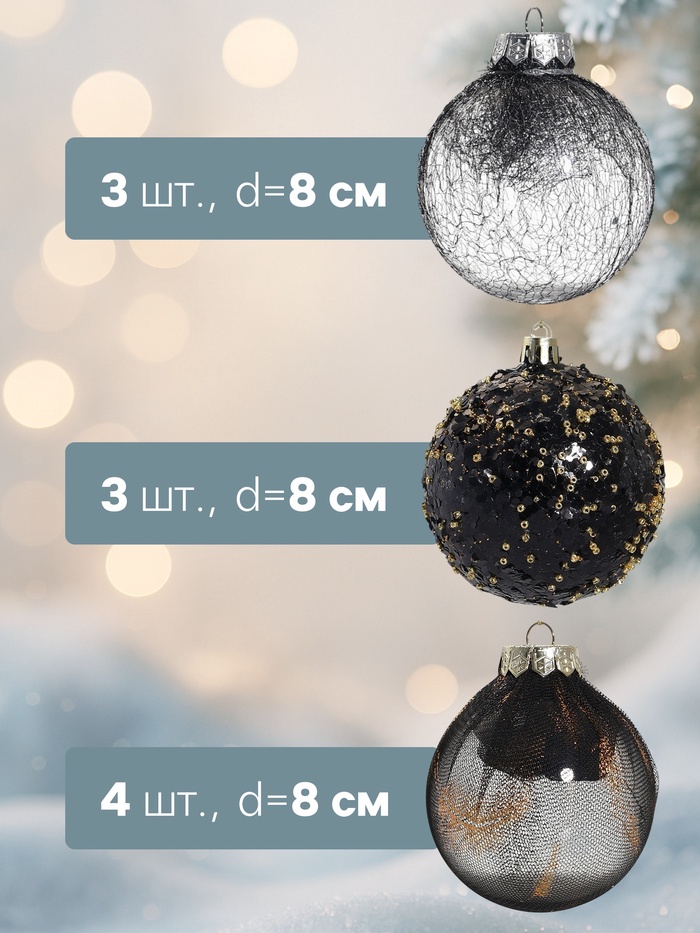 Ёлочные игрушки «Шаннен», шары новогодние, d=8 см, 9 шт., перья — Характеристики