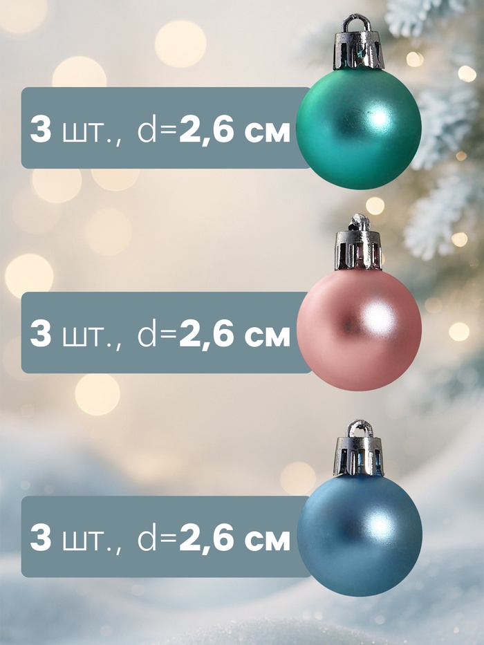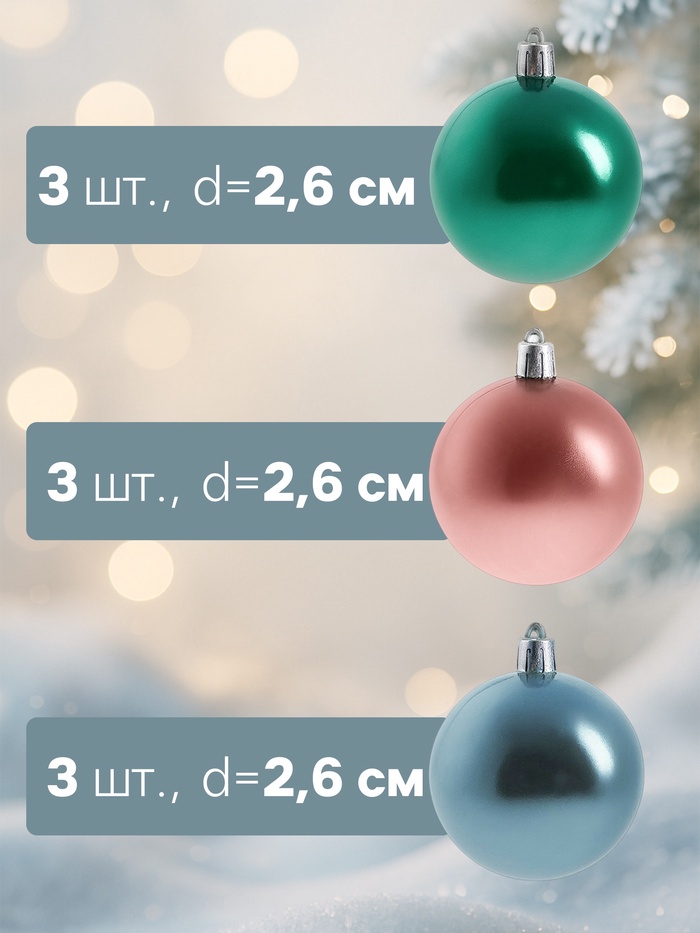 • Диаметр — 3 см, компактные размеры для плотного или акцентного оформления ёлки.