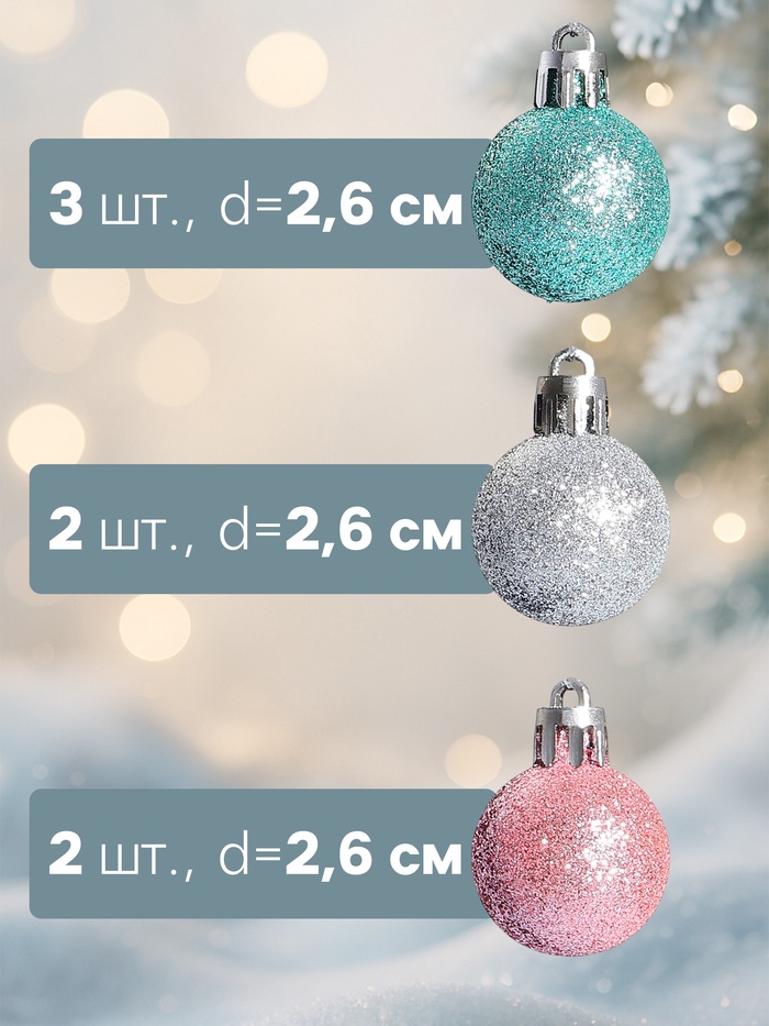 Ёлочные игрушки «Шарм», шары новогодние, d=2.6 см, набор 25 шт., МИКС — Характеристики