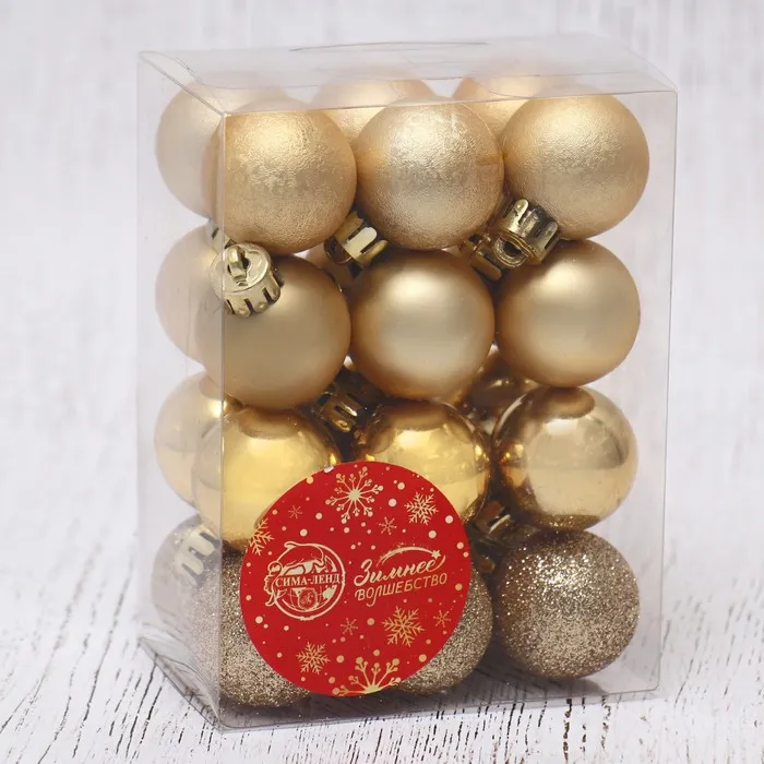 Ёлочные игрушки, шары новогодние , пластик, набор d-3 см, 24 шт "Классика блеск ассорти" золото — Характеристики