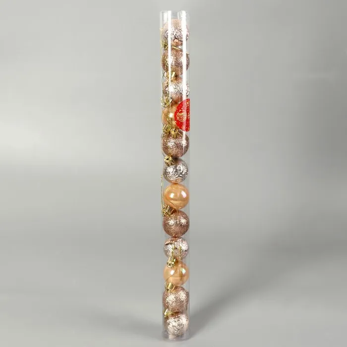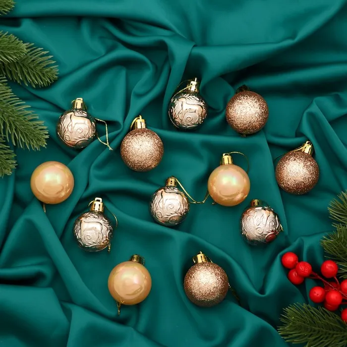 Ёлочные игрушки, шары новогодние , пластик, набор d-4 см, 12 шт "Мелодия" узор глянец, золото — Характеристики