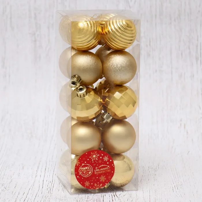 Ёлочные игрушки, шары новогодние , пластик, набор d-4 см, 20 шт "Диско ассорти" золото — Характеристики