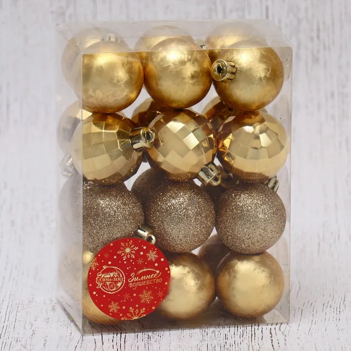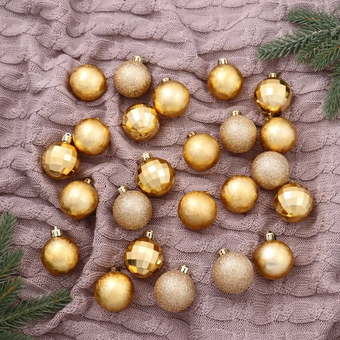Ёлочные игрушки, шары новогодние , пластик, набор d-4 см, 24 шт "Диско ассорти" золото — Характеристики