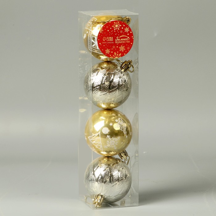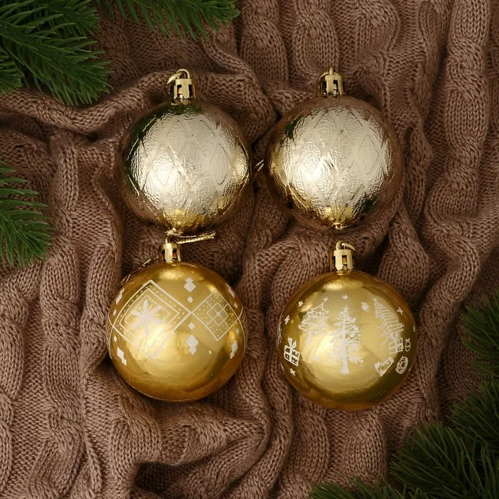 Ёлочные игрушки, шары новогодние , пластик, набор d-5,5 см, 4 шт "Амели" золото — Характеристики