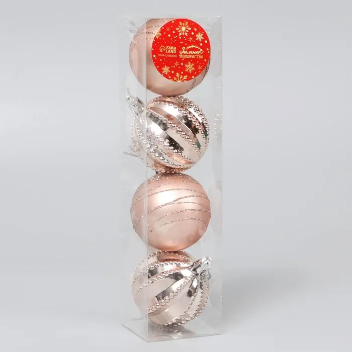 Ёлочные игрушки, шары новогодние , пластик, набор d-5,5 см, 4 шт "Космические полосы" орбиты, золото — Характеристики