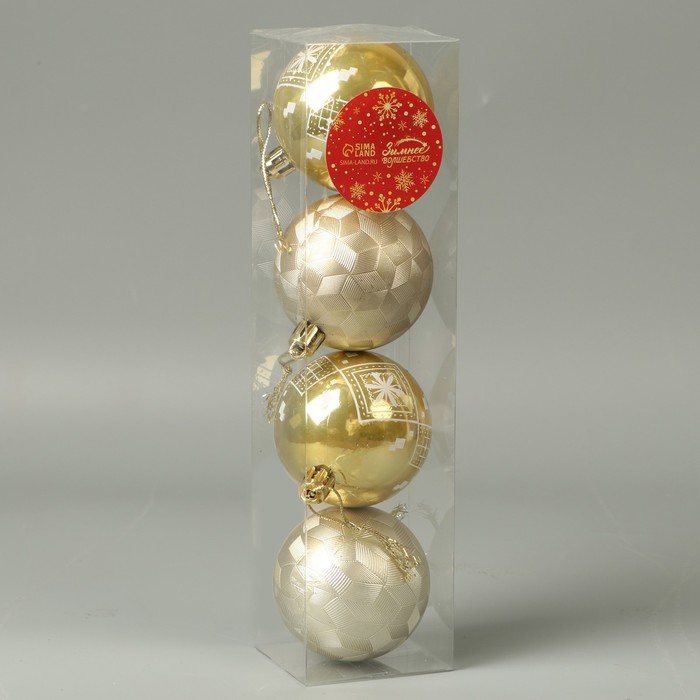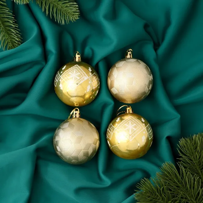 Ёлочные игрушки, шары новогодние , пластик, набор d-5,5 см, 4 шт "Новогодние забавы" ромб цветок, золото — Характеристики