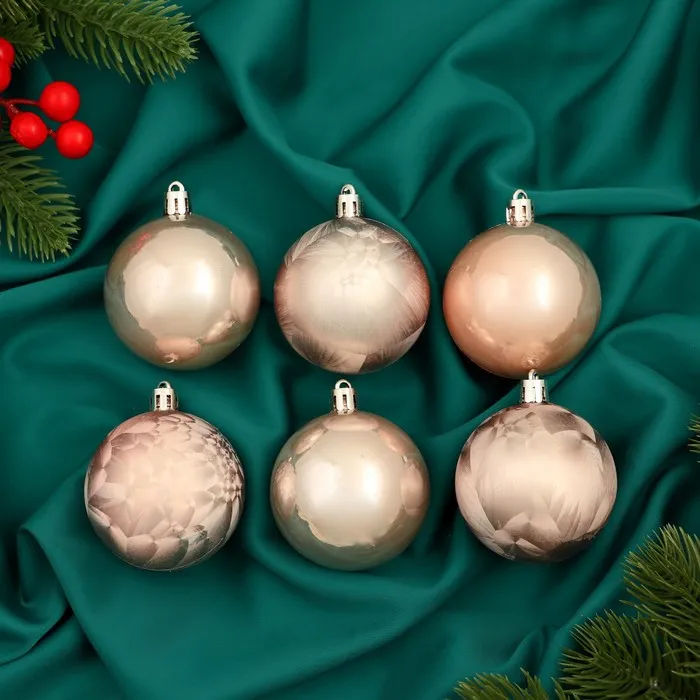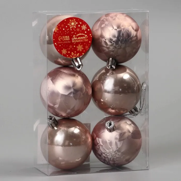 Ёлочные игрушки, шары новогодние , пластик, набор d-5,5 см, 6 шт "Чары волшебства" пудровый — Характеристики
