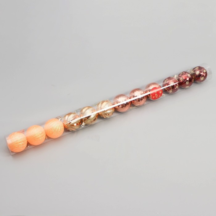 Ёлочные игрушки, шары новогодние , пластик, набор d-6 см, 12 шт "Агнет" полосы, золотисто-оранжевый — Характеристики