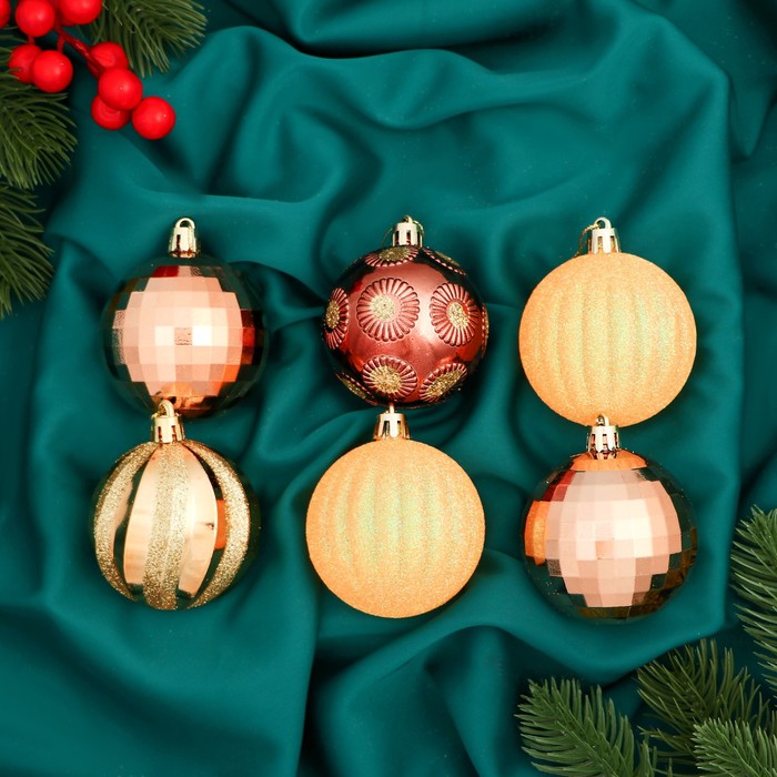 Ёлочные игрушки, шары новогодние , пластик, набор d-6 см, 12 шт "Агнет" полосы, золотисто-оранжевый — Характеристики