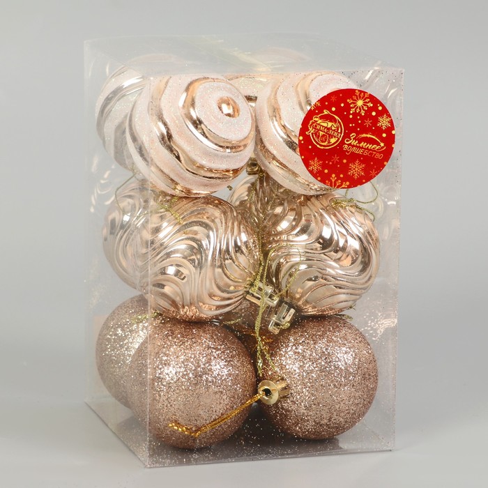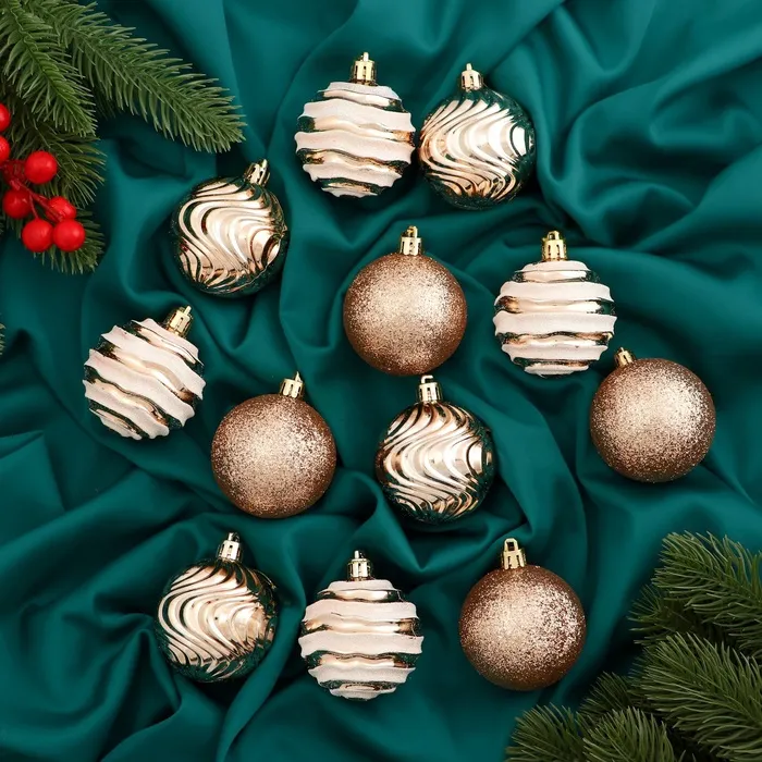 Ёлочные игрушки, шары новогодние , пластик, набор d-6 см, 12 шт "Мелодия" орбита, бело-золотой — Характеристики