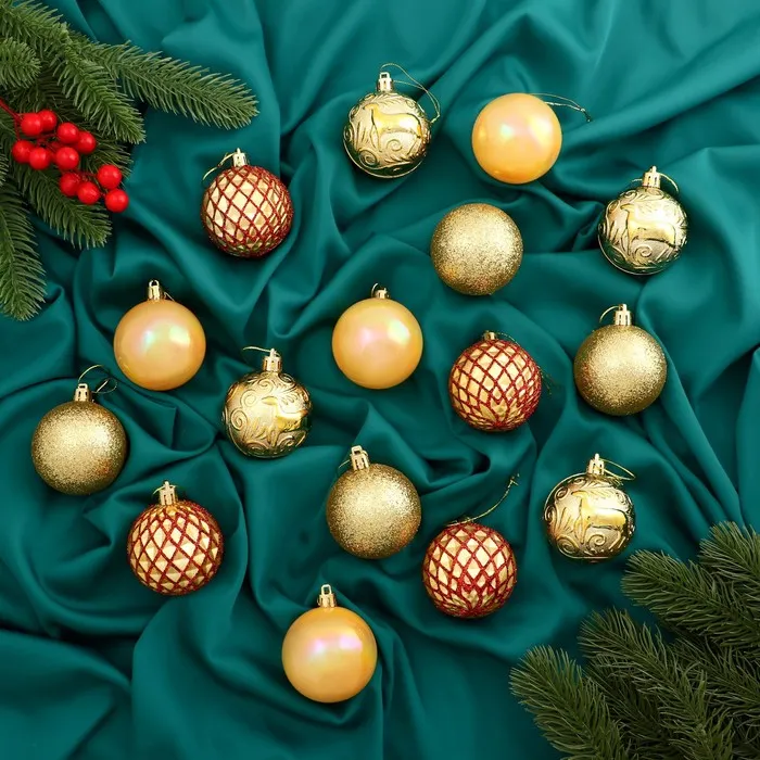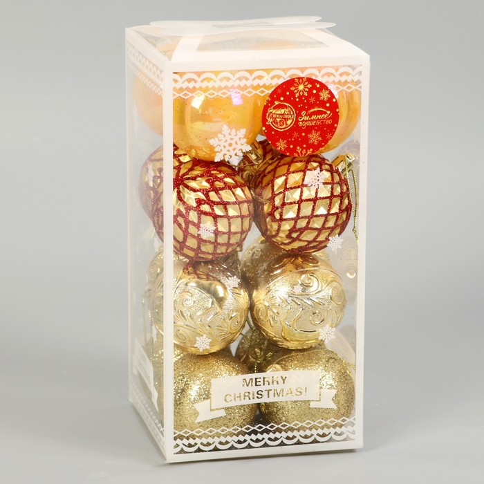 Ёлочные игрушки, шары новогодние , пластик, набор d-6 см, 16 шт "Мелодия" грани глянец, золото — Характеристики