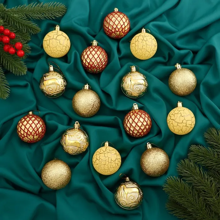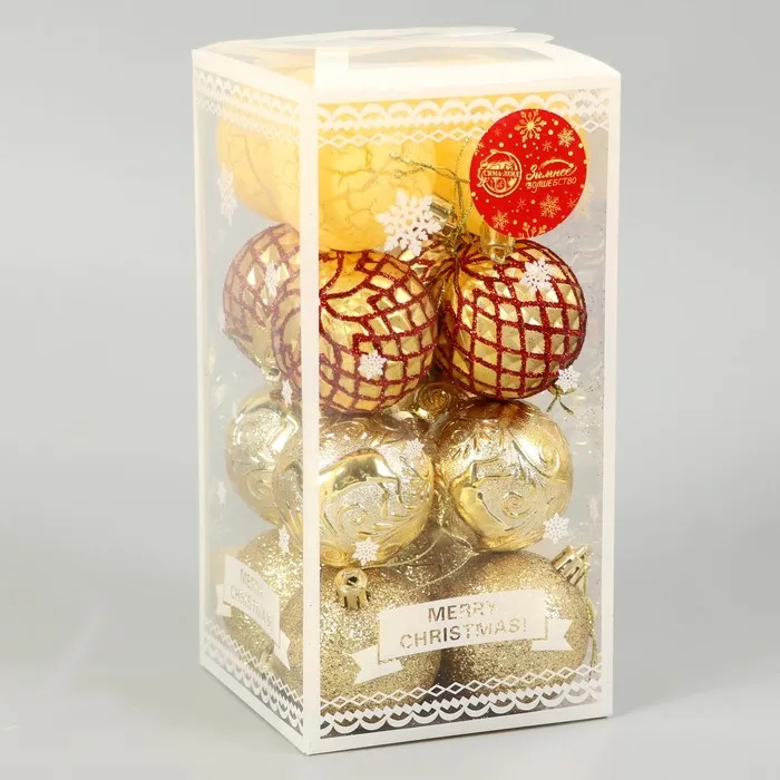 Ёлочные игрушки, шары новогодние , пластик, набор d-6 см, 16 шт "Мелодия" грани треск, золото — Характеристики