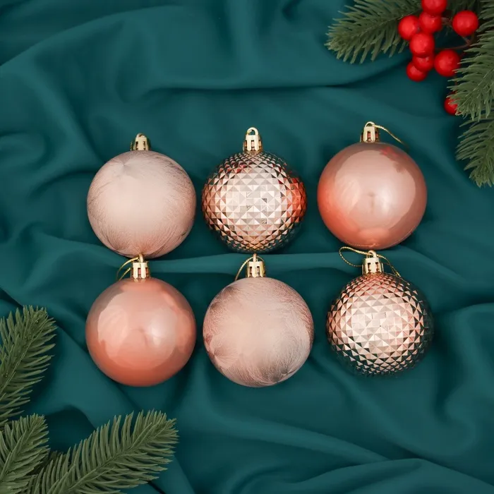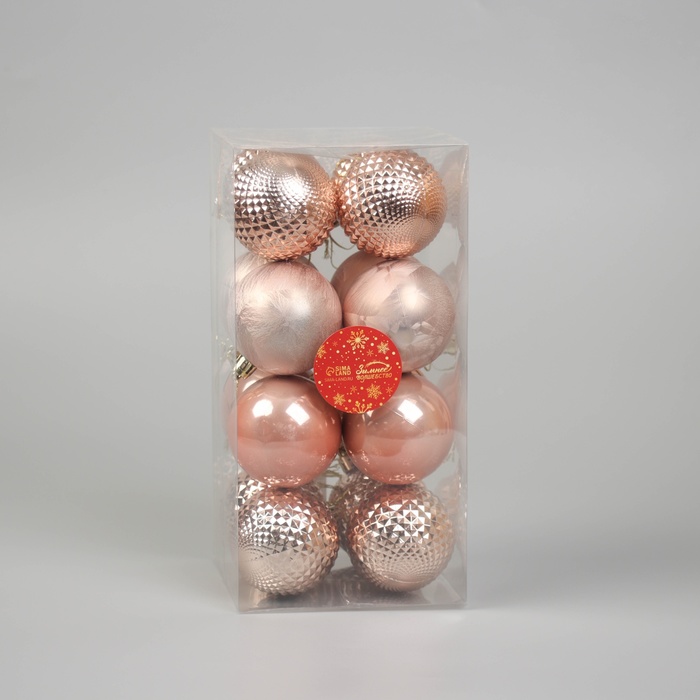 Ёлочные игрушки, шары новогодние , пластик, набор d-6 см, 16 шт "Венера" розовое золото — Характеристики
