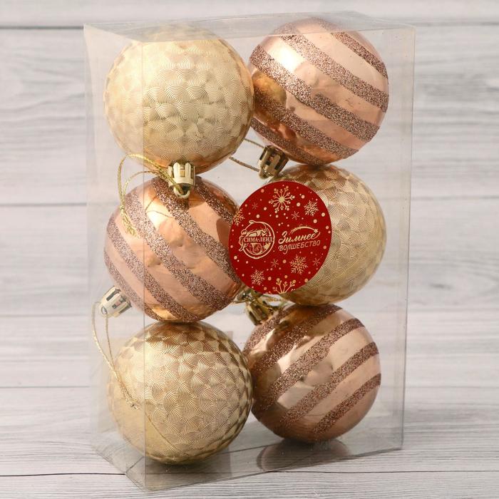 Ёлочные игрушки, шары новогодние , пластик, набор d-6 см, 6 шт "Алонсо полосы" золото — Характеристики