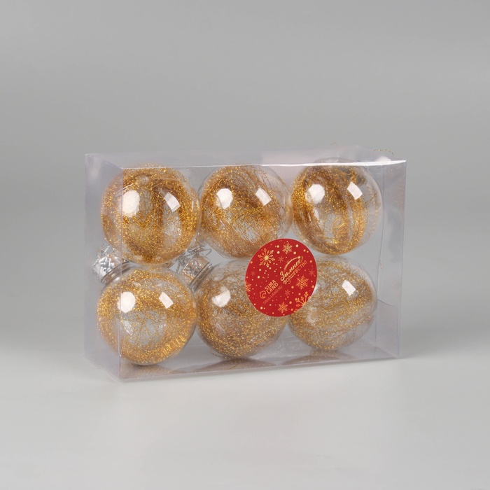 Ёлочные игрушки, шары новогодние , пластик, набор d-6 см, 6 шт "Дончо" золото прозрачный — Характеристики