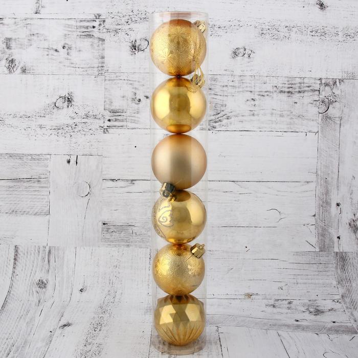 Ёлочные игрушки, шары новогодние , пластик, набор d-6 см, 6 шт "Праздничные огоньки - снежинки" золото — Характеристики