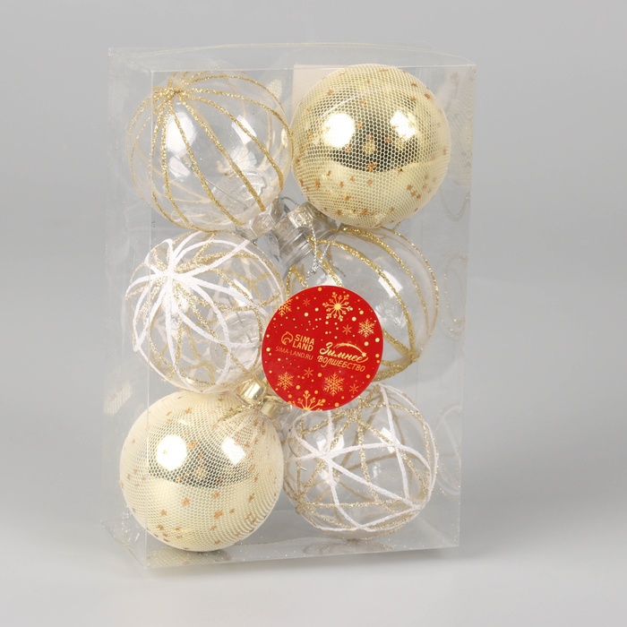 Ёлочные игрушки, шары новогодние , пластик, набор d-6 см, 6 шт "Зимняя долина" золото