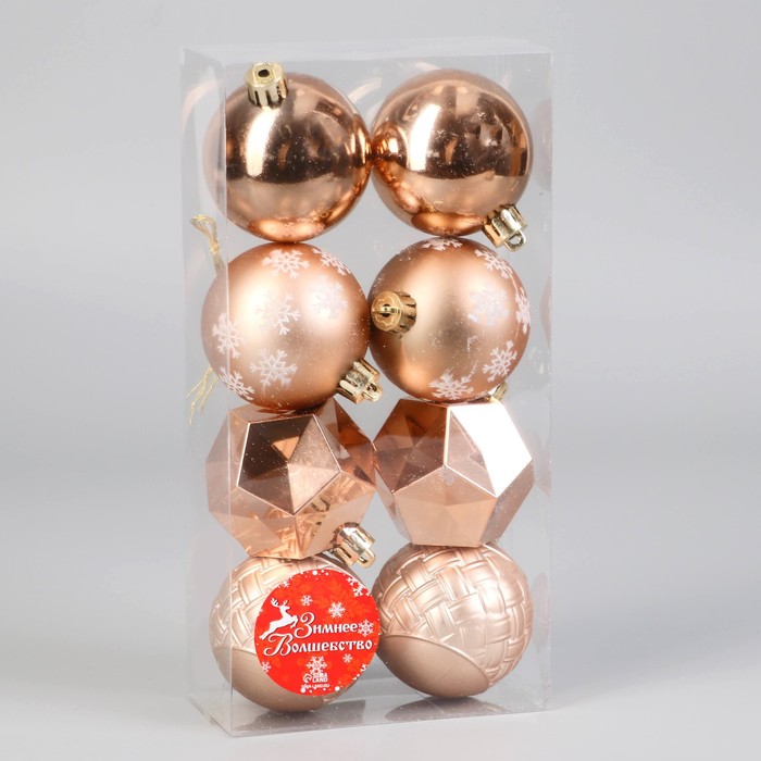 Ёлочные игрушки, шары новогодние , пластик, набор d-6 см, 8 шт "Изабель" грани, золото — Характеристики