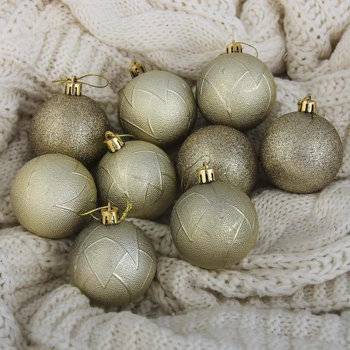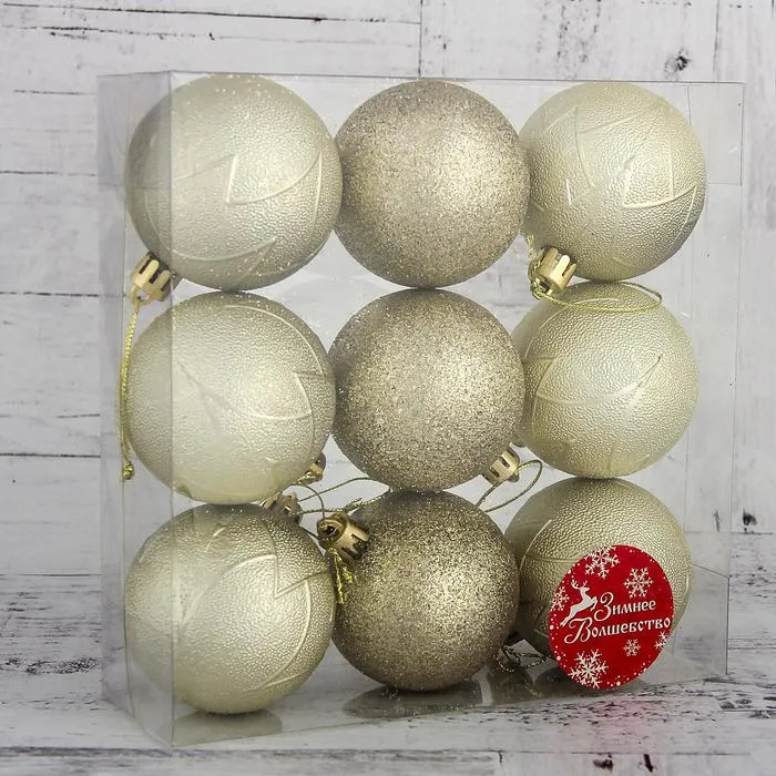 Ёлочные игрушки, шары новогодние , пластик, набор d-6 см, 9 шт " Сечение" — Характеристики