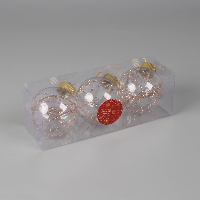 Ёлочные игрушки, шары новогодние , пластик, набор d-8 см, 3 шт "Джотто" золото прозрачный — Характеристики