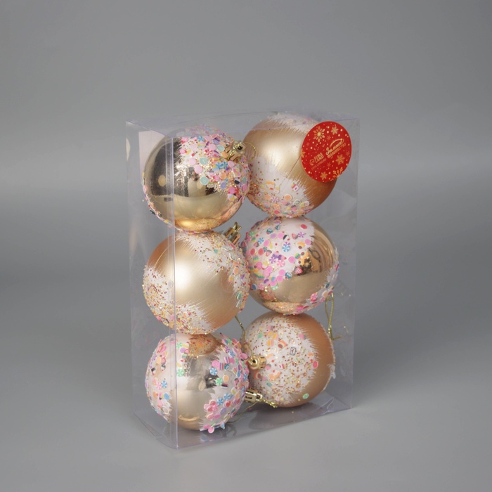 Ёлочные игрушки, шары новогодние , пластик, набор d-8 см, 6 шт "Новогодний восторг" золото — Характеристики