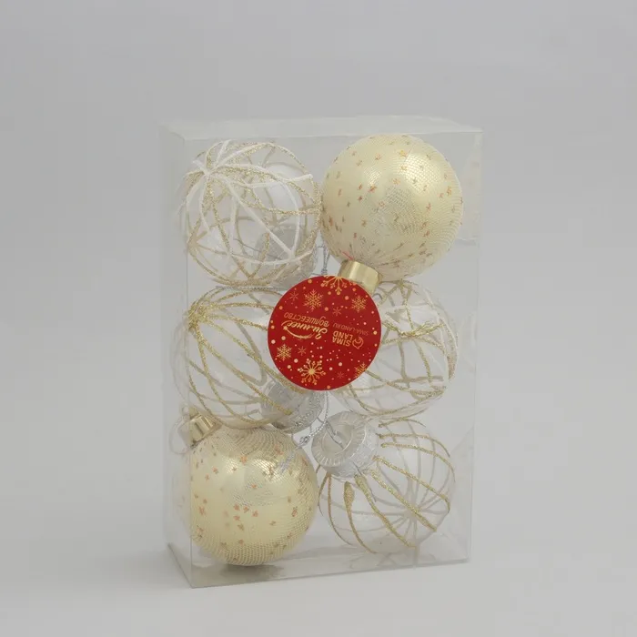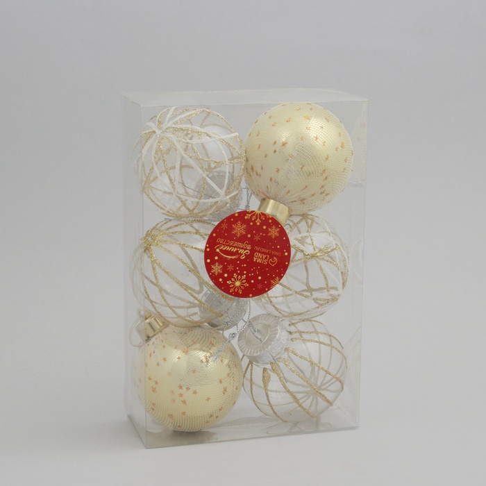 Ёлочные игрушки, шары новогодние , пластик, набор d-8 см, 6 шт "Зимняя долина" золото — Характеристики