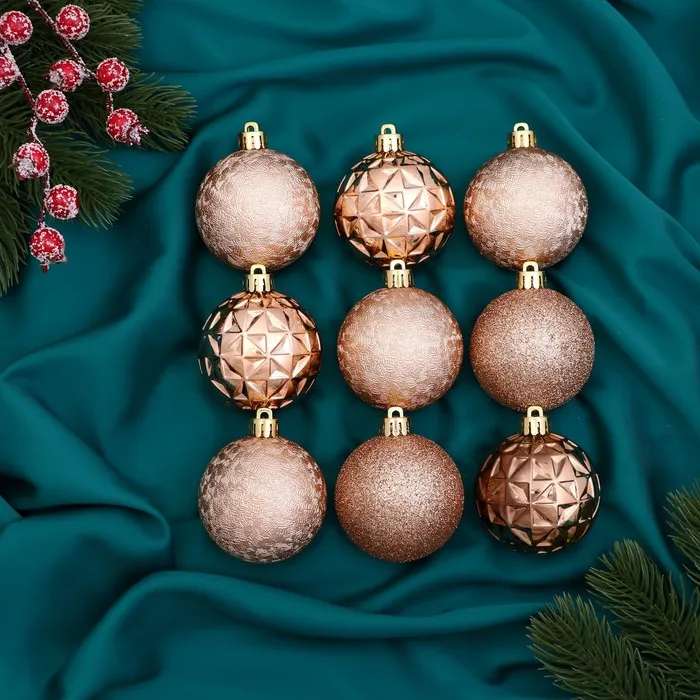 Ёлочные игрушки, шары, пластик, 9 шт "Изабель" астероид, золото — Характеристики