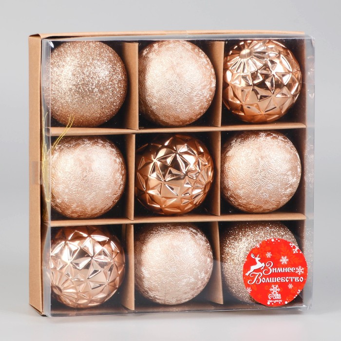 Ёлочные игрушки, шары, пластик, 9 шт "Изабель" астероид, золото