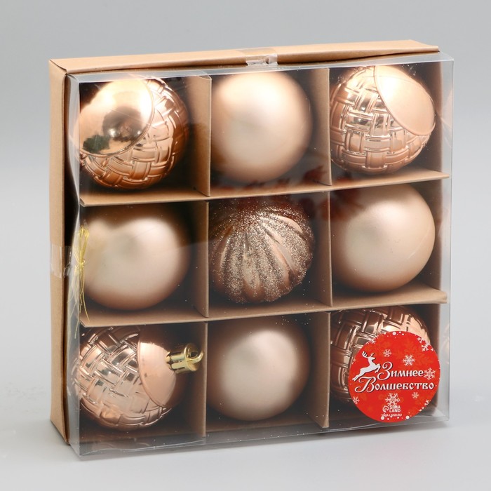 Ёлочные игрушки, шары, пластик, набор 9 шт "Изабель" геометрия, золото — Характеристики