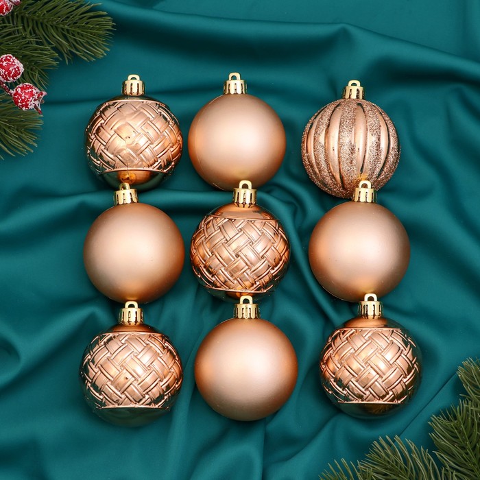 Ёлочные игрушки, шары, пластик, набор 9 шт "Изабель" геометрия, золото — Характеристики