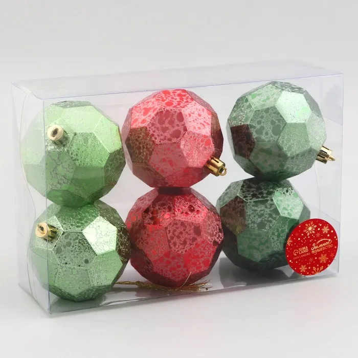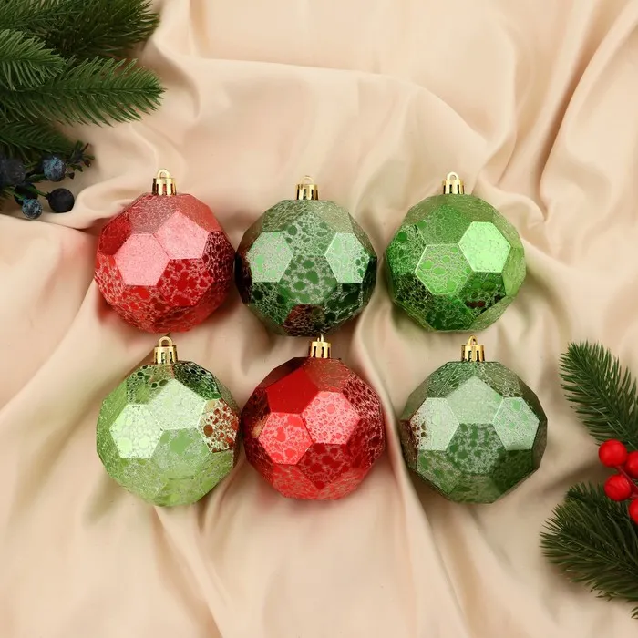 Ёлочные игрушки «Шерил», шары новогодние, d=8 см, набор 6 шт., зелёный/красный — Характеристики