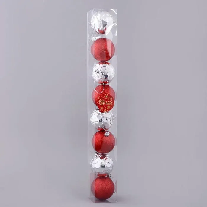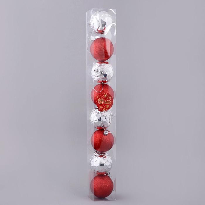 Ёлочные игрушки «Шишечки и блеск», шары новогодние, d=6 см, набор 8 шт., серебро красный — Характеристики