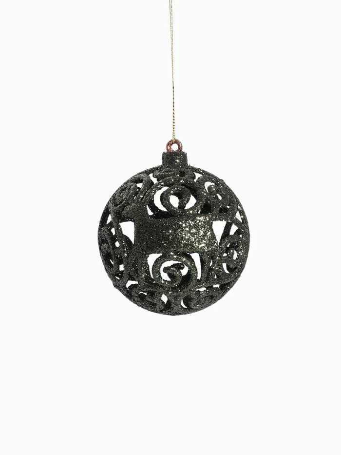 Шары становятся основой для тематического оформления, сочетаясь с золотыми и бежевыми акцентами. Их используют в составе сложных гирлянд, размещают на столах рядом со свечами или подвешивают над дверными проёмами. Резной узор повторяет морозные рисунки на стекле, усиливая зимнее настроение.