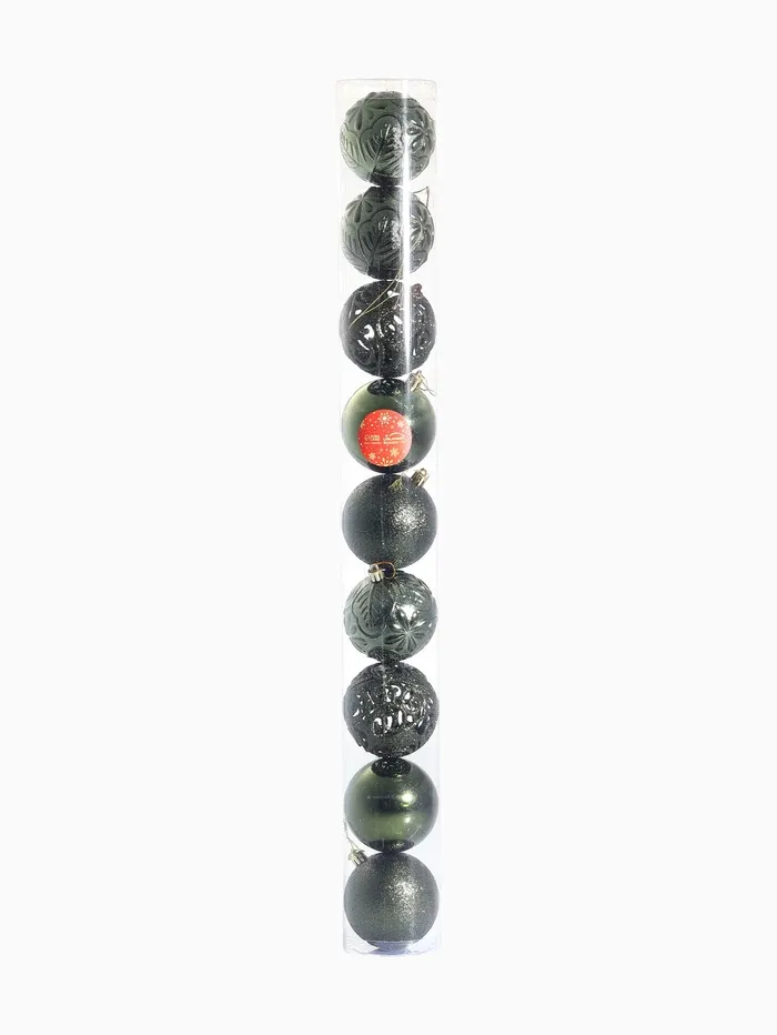 Девять изумрудных шаров с резным узором создают элегантный акцент новогоднего декора. Диаметр 8 см гармонично смотрится на ветвях живой и искусственной ели. Пластиковые украшения сочетают скандинавскую лаконичность и барочную выразительность, образуя универсальный комплект для современного праздничного интерьера.