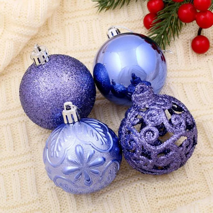 Набор из двенадцати сиреневых ёлочных шаров диаметром 6 см выполнен в стиле фьюжн с резным узором. Эти украшения привносят в новогодний интерьер современную эстетику и текстурную глубину, создавая выразительный и гармоничный образ праздничного декора.
