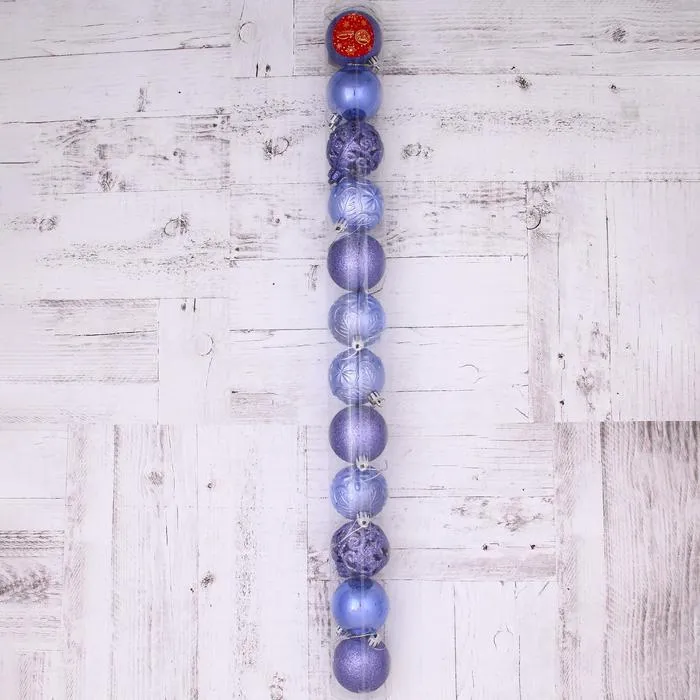 - Двенадцать шаров с оригинальным резным рисунком в мягком сиреневом цвете.